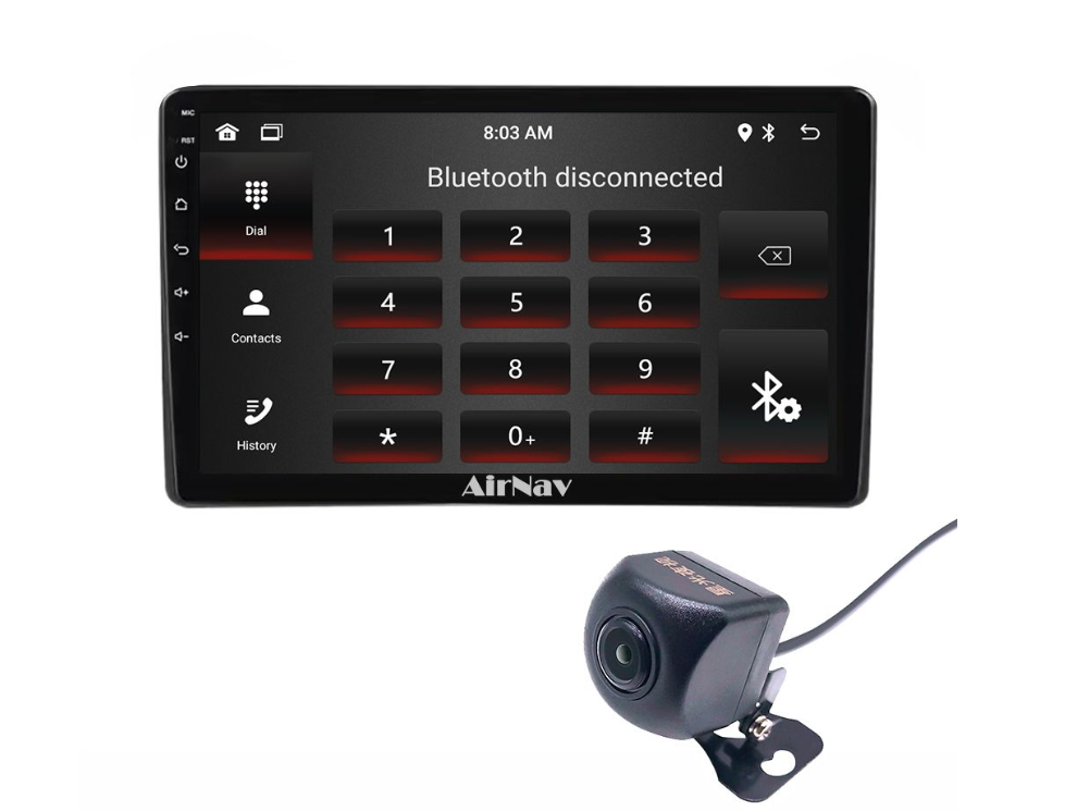 AirNAv 2GB+32GB Plug and Play Reverse Camera Included Get this High Spec 9 inch Android Car GPS Navigation Plug and Play screen with an extremely fast and highly responsive Ips touch. This Unit includes a 2-in-1 Colour Reverse Camera in the package for your convenience.